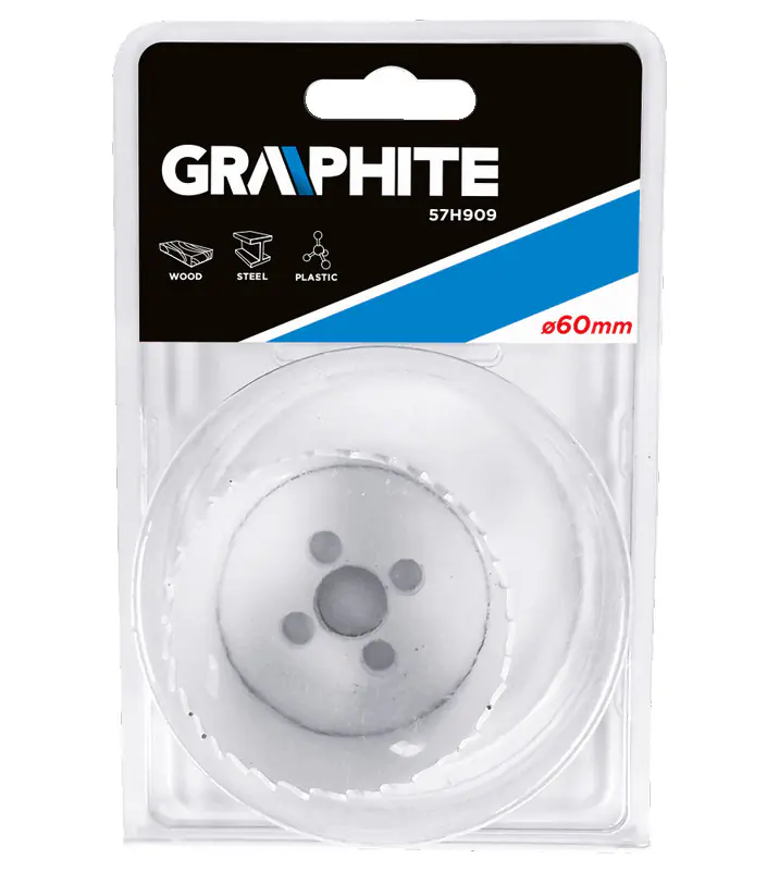 Otwornica bi-metalowa 60 mm, maksymalna głębokość wiercenia 38 mm, podziałka zębów 6/4 TPI