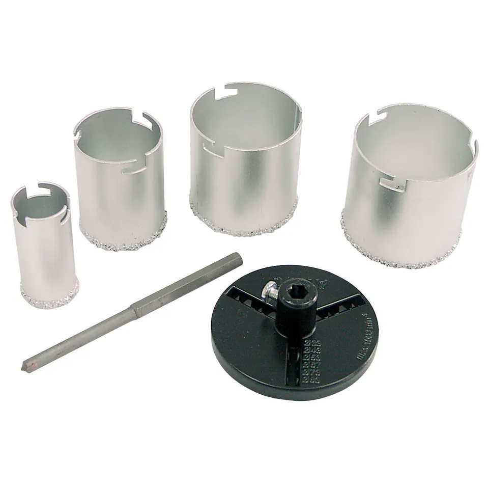 - Skład: otwornice Ø 33, 53, 67, 73 mm, wiertło prowadzące z węglikiem i uchwyt talerzowy