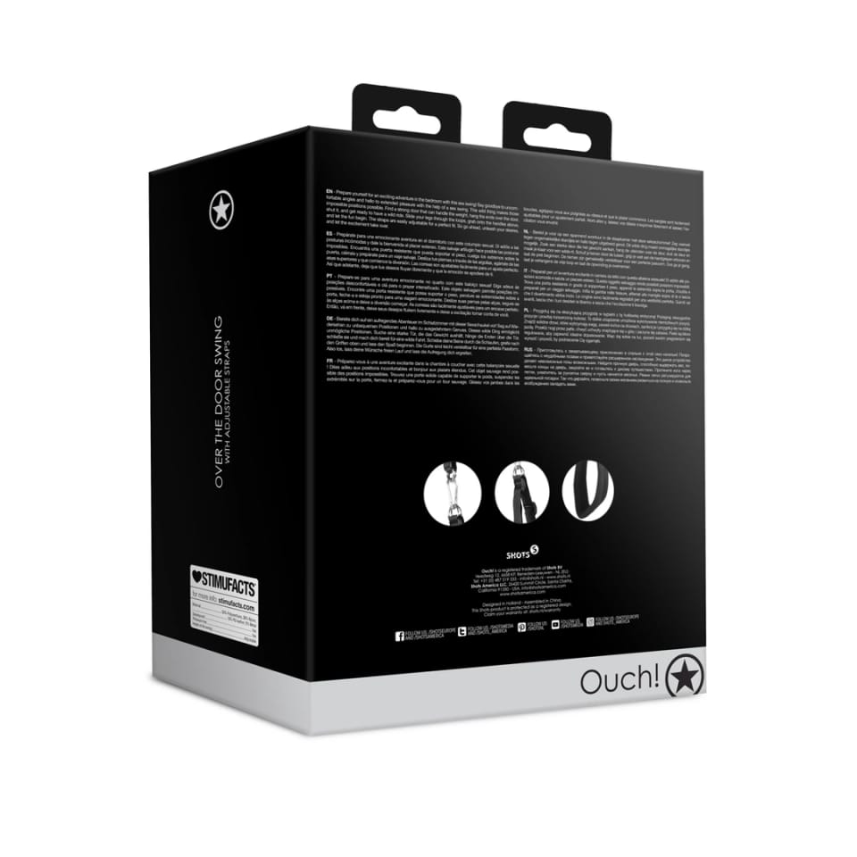 Ouch! by Shots Huśtawka do drzwi z regulacją paskow – czarna to innowacyjne akcesorium, ktore umożliwia wygodne i stabilne wsparcie podczas użytkowania w domowym zaciszu. Model został zaprojektowany z myślą o łatwym montażu na drzwiach – wystarczy umieścić końcowki nad drzwiami i je zamknąć, by uzyskać solidne podparcie. System regulowanych paskow pozwala na indywidualne dopasowanie do użytkownika, gwarantując komfort oraz bezpieczeństwo.