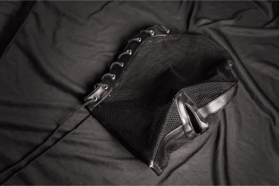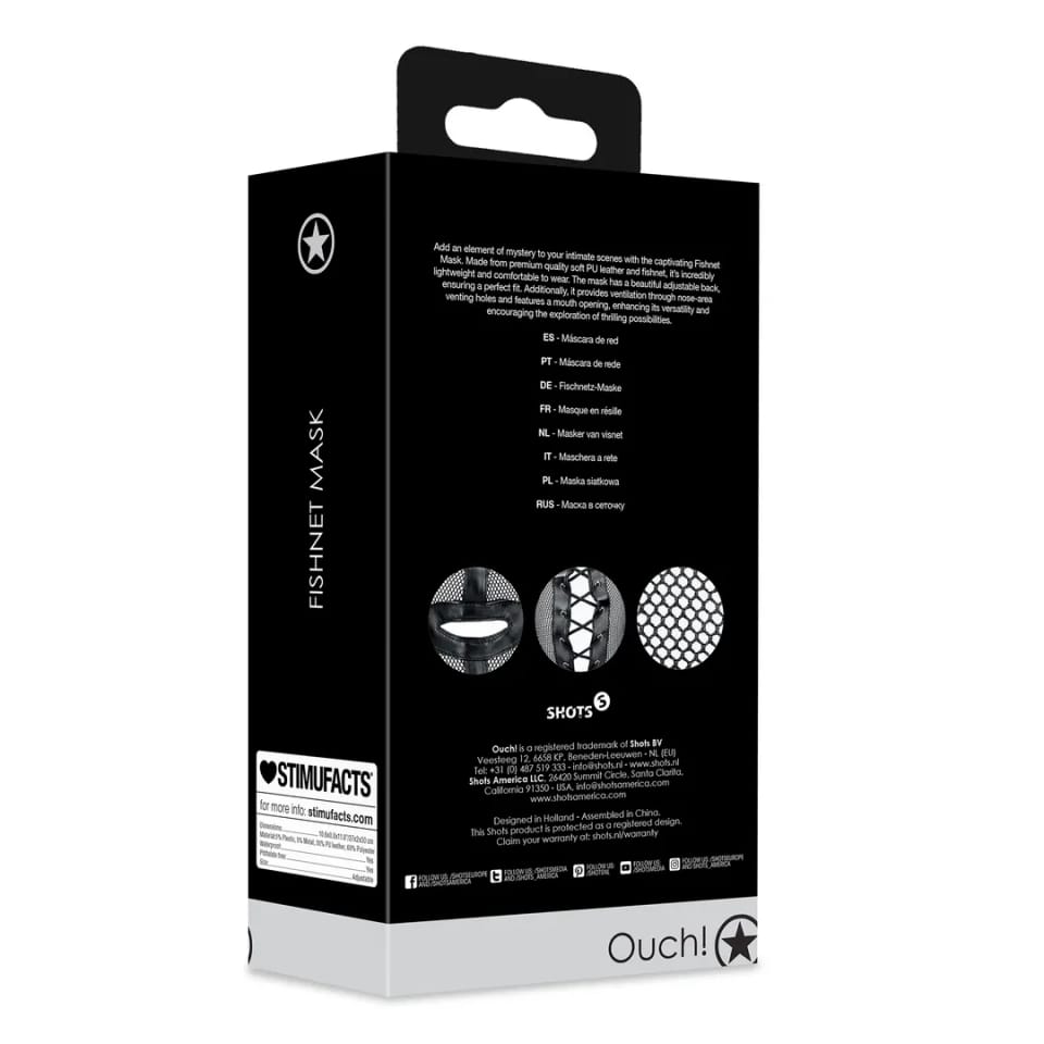Maska na twarz marki Ouch! by Shots to stylowe i funkcjonalne akcesorium wykonane z połączenia wytrzymałej siatki kabaretowej oraz wysokiej jakości skory PU. Model ten cechuje się wyjątkową lekkością oraz komfortem użytkowania, dzięki czemu świetnie sprawdzi się podczas rożnych wydarzeń tematycznych czy jako element stylizacji.