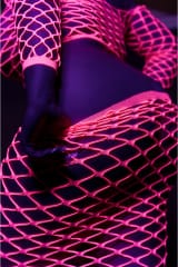 Wyjątkową cechą tego zestawu jest jego neonowa kolorystyka oraz wykorzystanie materiałow aktywowanych promieniami UV – podświetlają się w świetle ultrafioletowym, co pozwala na spektakularne efekty wizualne podczas wydarzeń w klubach czy na tematycznych imprezach. Efektowny komplet sprawdzi się zarowno jako stylowy stroj imprezowy, jak i niebanalna bielizna do użytku domowego.