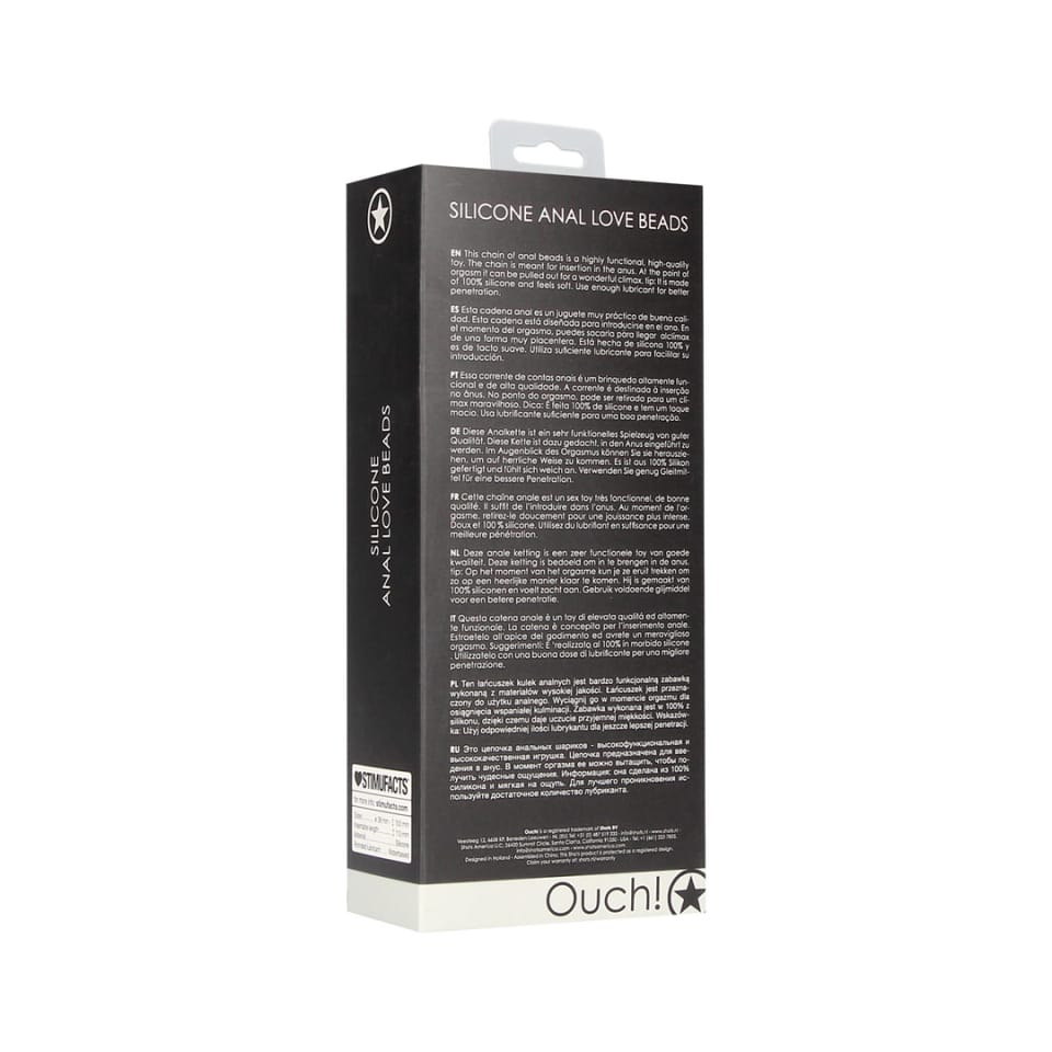 Ouch! by Shots – silikonowy łańcuszek koralikow, czarny, 18 cm to wysokiej klasy model zaprojektowany z myślą o bezpieczeństwie i komforcie użytkowania. Powierzchnia produktu została wykonana z miękkiego, elastycznego silikonu, ktory zapewnia łatwość czyszczenia oraz wysoką odporność na zużycie. Elastyczna konstrukcja oraz anatomiczny kształt koralikow sprawiają, że model ten jest wygodny w użytkowaniu, a specjalny uchwyt na końcu zapewnia pełną kontrolę podczas stosowania.