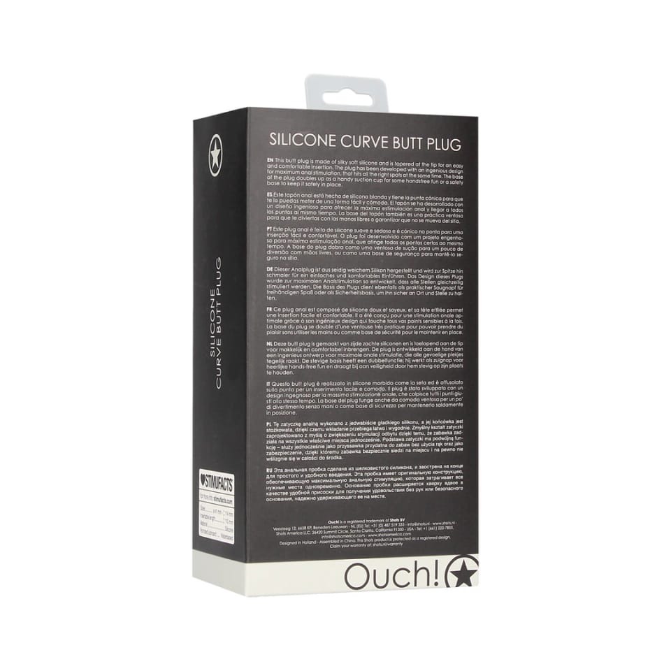 Poznaj zaawansowany model Ouch! Curve – silikonowy korek z ergonomicznie wyprofilowanym kształtem, ktory został zaprojektowany, by zapewnić komfort użytkowania oraz optymalne dopasowanie do anatomii. Wykonany z wysokiej jakości, jedwabiście gładkiego silikonu medycznego, wyrożnia się zwężoną końcowką ułatwiającą delikatne i bezpieczne wprowadzanie.