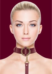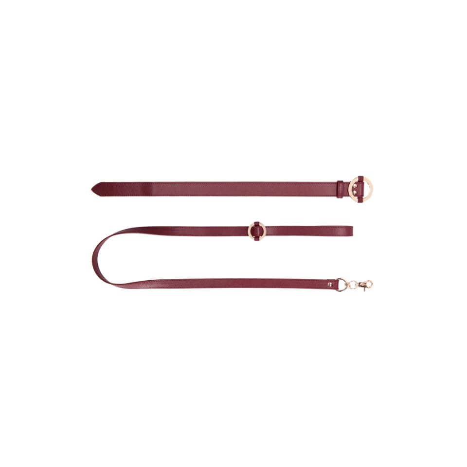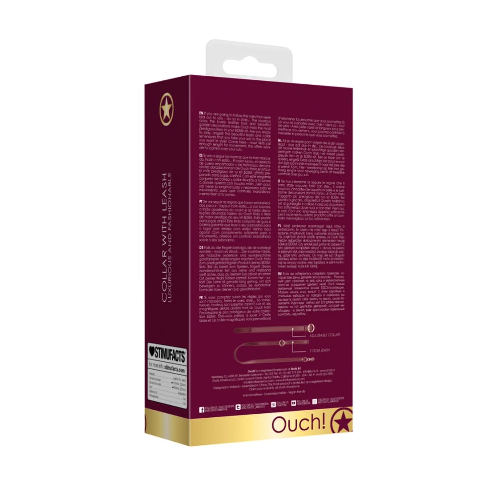 Ouch! Halo – Elegancki zestaw z obrożą i smyczą, wykonany z wysokiej jakości materiału o skorzanym wykończeniu, ozdobiony stylowymi złotymi detalami.
