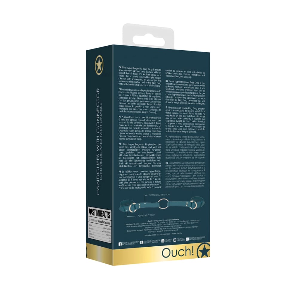 Ouch! Halo to elegancki zestaw kajdanek na uprzęży, ktory łączy w sobie nowoczesny design, funkcjonalność oraz luksusowe wykończenie. Model wyrożnia się wysoką jakością wykonania ze skoropodobnego materiału w eleganckim kolorze oraz złotymi, dekoracyjnymi elementami, ktore podkreślają prestiżowy charakter produktu.