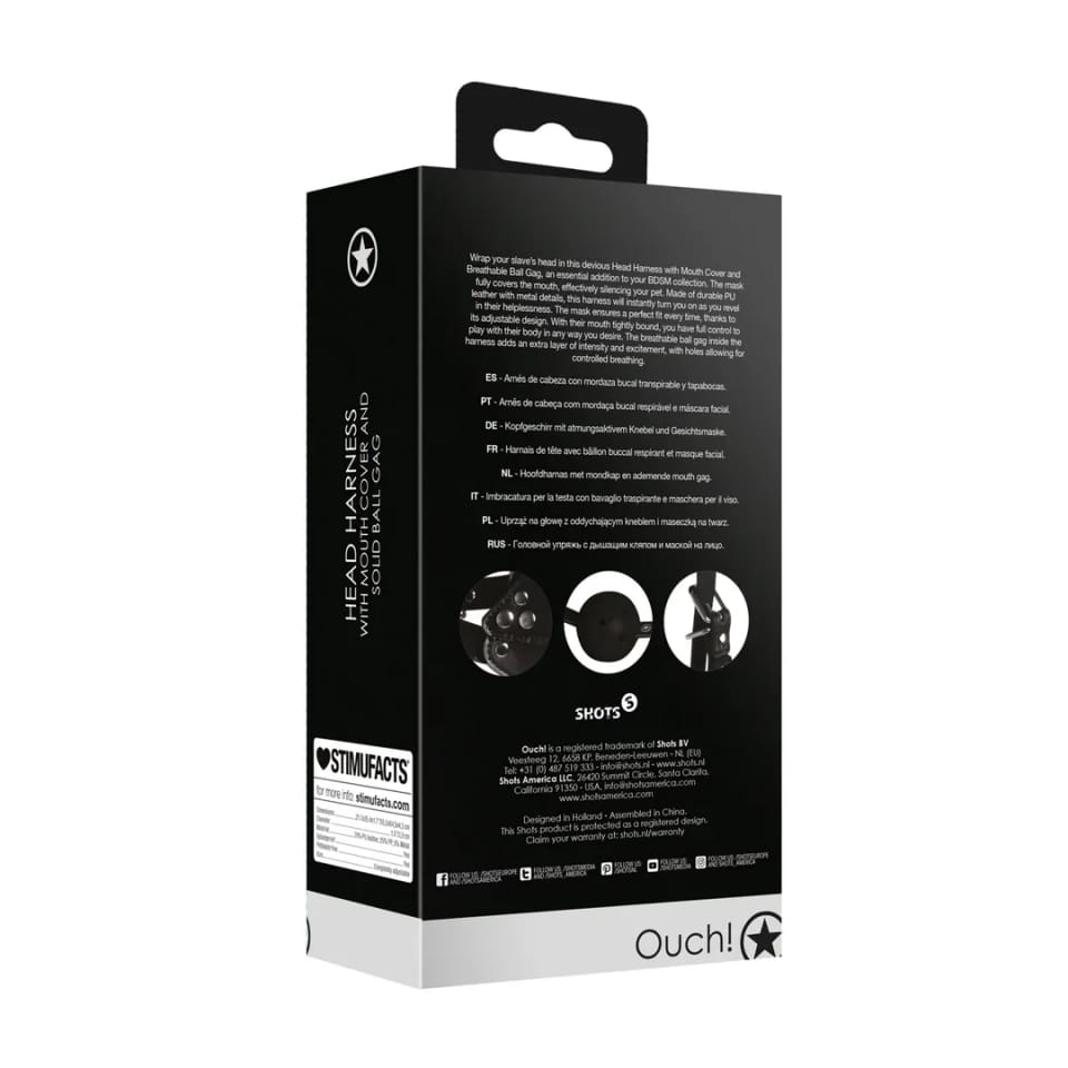 Ouch! Head Harness – funkcjonalna uprząż z osłoną ust oraz kulkowym elementem wentylowanym