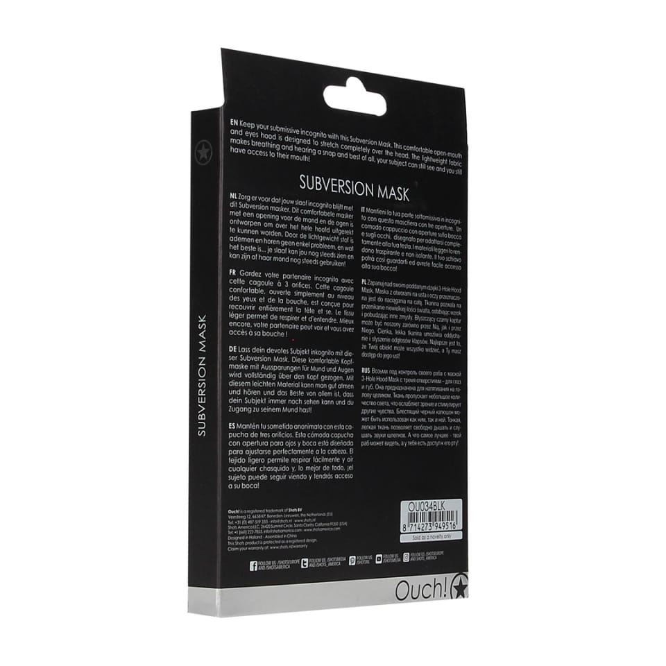 Ouch! Maska tekstylna na głowę z otworami na oczy i usta to praktyczny dodatek przeznaczony do zastosowań tematycznych, umożliwiający częściowe zakrycie twarzy przy zachowaniu komfortu i funkcjonalności.