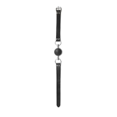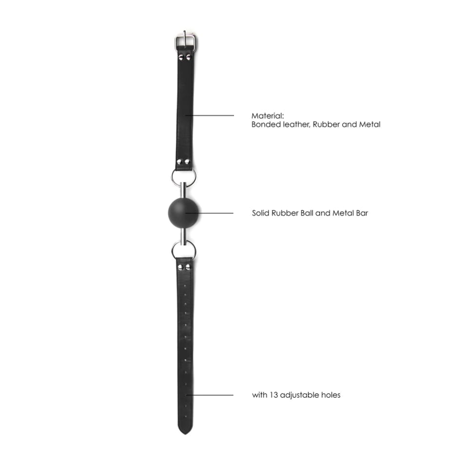Knebel wyposażony jest w wytrzymałe, skorzane paski z estetycznymi przeszyciami, ktore nie tylko nadają mu stylowego charakteru, ale także gwarantują trwałość podczas użytkowania. Pasek posiada 5-stopniową regulację długości, co pozwala na indywidualne dopasowanie do obwodu głowy. Kulka o ergonomicznym kształcie zapewnia komfort użytkowania i stabilne utrzymanie na swoim miejscu.