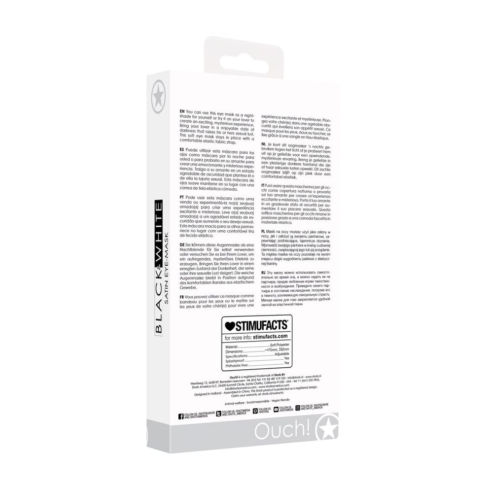 Ouch! Satynowa maska relaksacyjna na oczy to stylowy dodatek, ktory zapewnia komfort i subtelne zaciemnienie podczas relaksu czy odpoczynku.