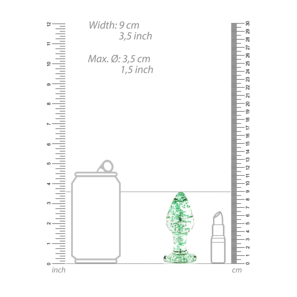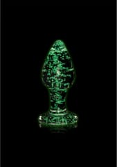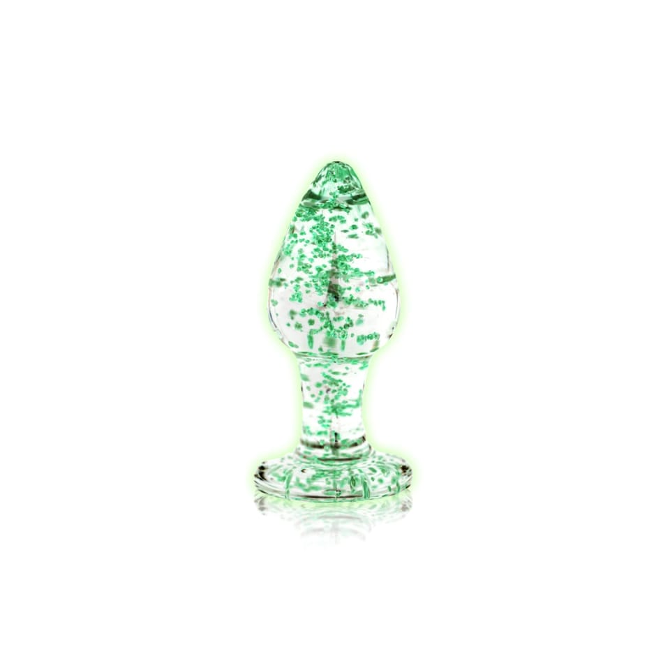 Prezentowany model to wysokiej jakości szklany korek o dużym rozmiarze, wyrożniający się niezwykłą cechą: świecenie w ciemności. Wykonany z solidnego, gładkiego szkła borokrzemowego, jest nie tylko trwały, ale także wyjątkowo łatwy w utrzymaniu higieny. Fluorescencyjna zielona powierzchnia sprawia, że produkt efektownie prezentuje się po aktywacji światłem słonecznym lub lampą UV, dodając nowoczesnego charakteru każdej kolekcji akcesoriow intymnych.