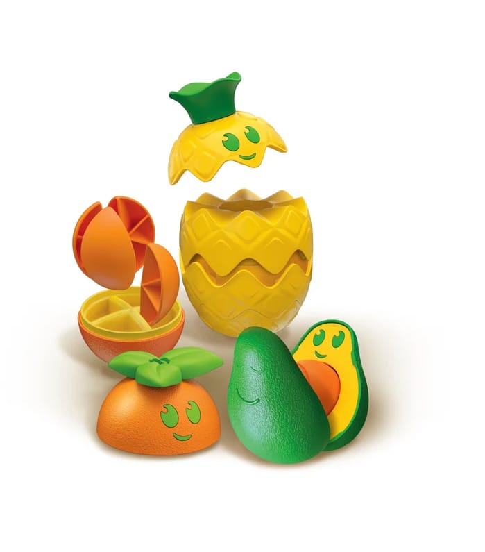 Owoce do składania, każdy w inny sposób, o progresywnych poziomach trudności. Dobór elementów i ich kompozycja stymuluje logikę i manualną zabawę.