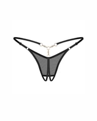 Stringi o otwartej konstrukcji wykonane z elastycznych pasków, stworzone dla osób ceniących odważny, nowoczesny design.Minimalistyczna forma doskonale eksponuje linię bioder, podkreślając sylwetkę w wyjątkowo zmysłowy sposób.Złote, biżuteryjne detale umieszczone z przodu oraz nad pośladkami subtelnie przyciągają uwagę i dodają luksusowego charakteru.Otwarty krok nadaje modelowi prowokujący wymiar i podkreśla jego erotyczną funkcję.Regulowane paski pozwalają na idealne dopasowanie do ciała oraz zapewniają komfort noszenia.Starannie dobrany materiał gwarantuje elastyczność, lekkość i wygodę.Bielizna została zaprojektowana w Unii Europejskiej, z dbałością o detale i jakość wykonania.Wszystkie metalowe elementy są wolne od niklu, dzięki czemu są przyjazne dla skóry.Cechy produktu:Konstrukcja: otwarty krok.Detale: złote akcenty biżuteryjne bez dodatku niklu.Paski: elastyczne i regulowane.Skład: 94% poliamid, 6% elastan.Projekt: UE.Uwaga: produkt nieodpowiedni dla dzieci poniżej 3 lat – ryzyko zadławienia drobnymi elementami.