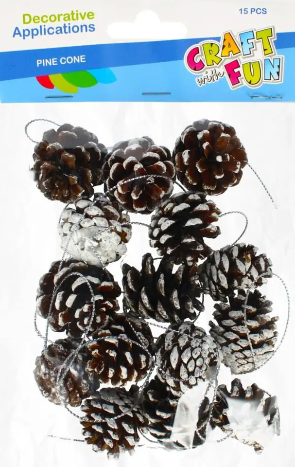 Zalety produktu: idealne do zdobienia kartek okolicznościowych, świetnie sprawdzą się również jako element dekoracyjny do pokoju dziecka czy dodatki do prezentów. Przy pomocy tego zestawu możesz zaprojektować własne ozdoby. Używaj tych produktów w połączeniu z innymi akcesoriami z serii CRAFT WITH FUN lub z innymi kompletami z serii. Zawartość opakowania: 15 szt. naturalnych szyszek o średnicy 3 cm. Wymiary/waga: wymiary opakowania dł. x wys. x gł. cm : 13x21x3 ,waga produktu w opakowaniu kg : 0,06 kg. Przeznaczone dla dzieci w wieku: 3 . Pakowane w woreczek z zawieszką . W inerze po 12 szt. Karton zbiorczy po 96 szt.