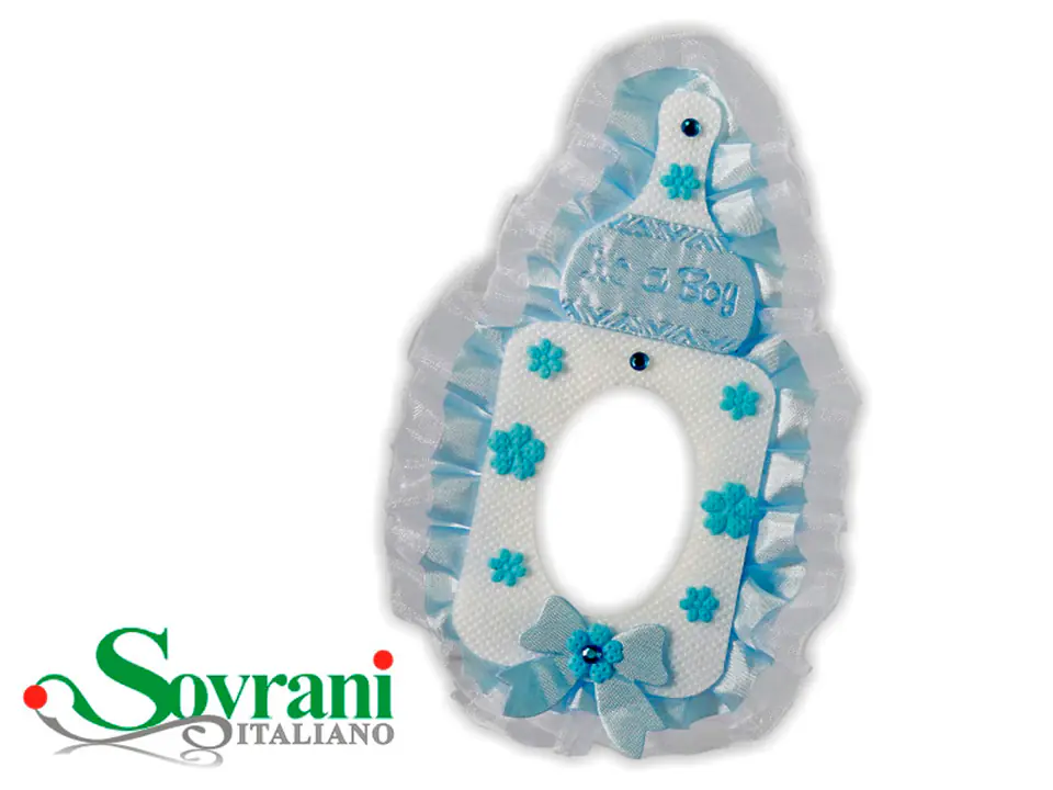 Niesamowicie urokliwa ozdoba chłopięcego pokoju. Wykonana z przyjemnego w dotyku materiału. przypomina w swym wyglądzie ramkę na zdjęcie. W środku umieszczono butelkę. którą ozdobiono licznymi. mniejszymi i większymi