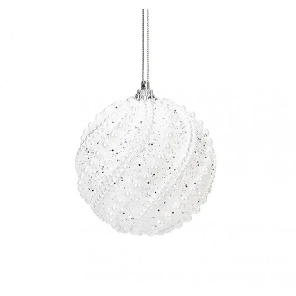 Ozdoba świąteczna bombka perełki biała 1szt KSN148