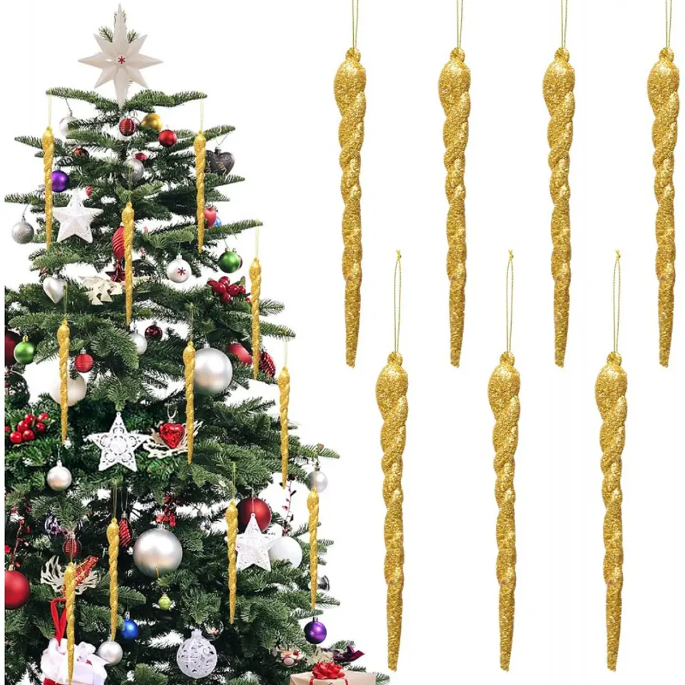 Ozdoba świąteczna- sople loduIdealny akcent do podkreślenia świątecznego klimatu. Specyfikacja:Zestaw zawiera 5 szt sopli. Wymiary:Długość: 12 cmSzerokość: 1 cm Waga: 27 g