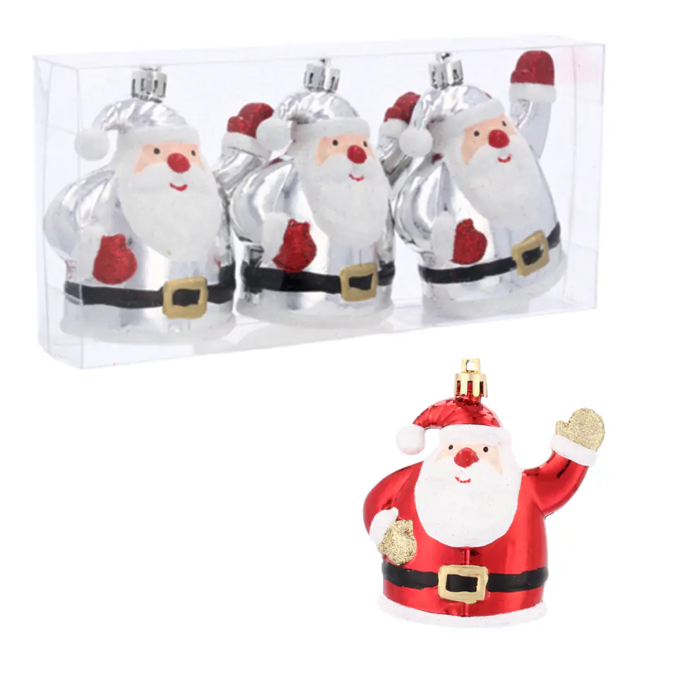 Ozdoba choinkowa Mikołaj komplet 3 sztuk - srebrny