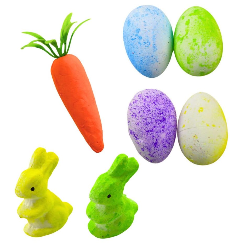 - 2 styropianowe zajączki (żółty i zielony)