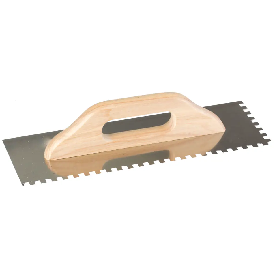 - Do nakładania kleju przy pracach glazurniczych (ząb 6x6 i 8x8) przy układaniu parkietów, przy rozprowadzaniu zaprawy murarskiej (ząb 10x10)
