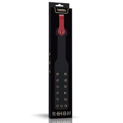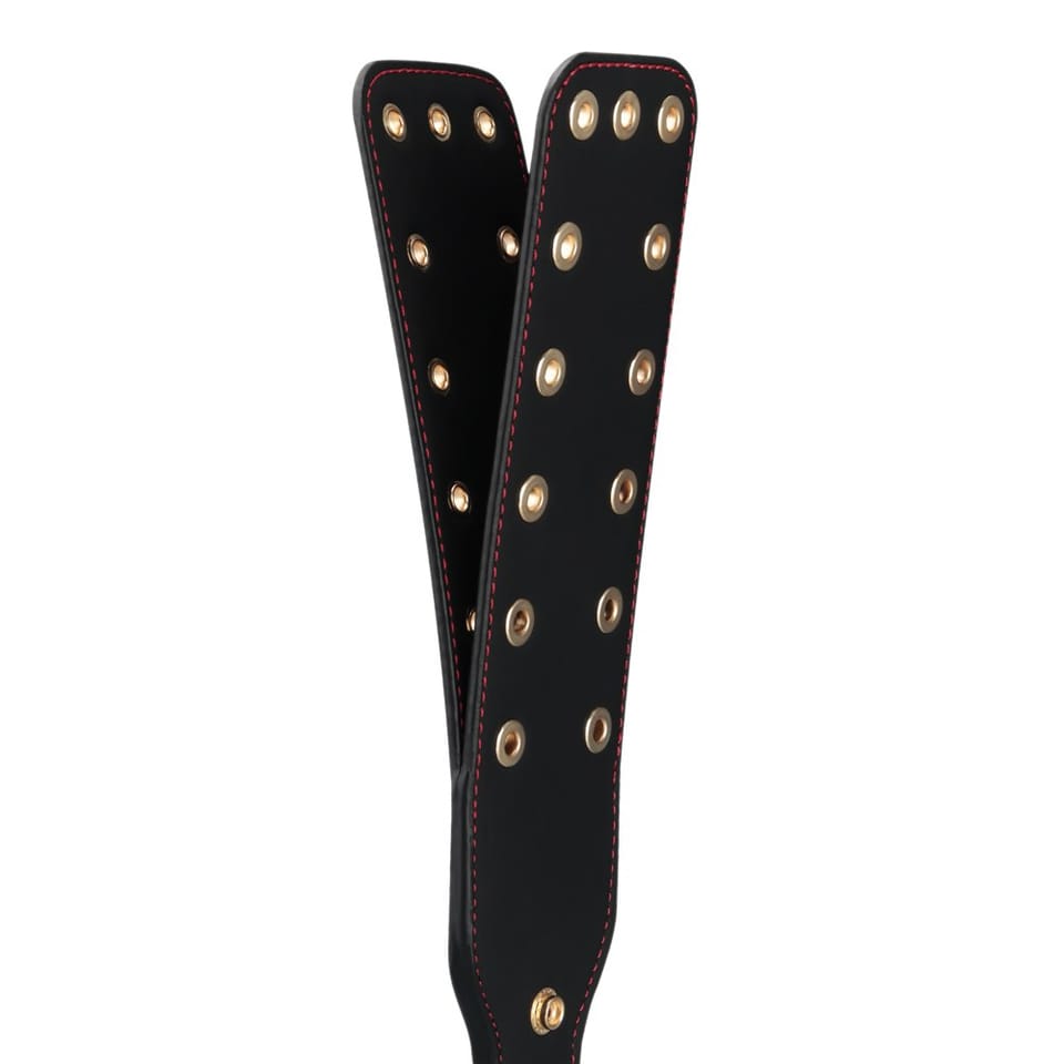 Zanurz się w przypływie radości dzięki naszej pacce Rebellion Reign Paddle. Wykonana z wytrzymałego materiału PU, ta łopatka została zaprojektowana, aby zapewnić zmysłową ucztę, która jest zarówno stymulująca, jak i satysfakcjonująca.Packa ma intrygujący design z dwiema gałęziami, z których każda ozdobiona jest wydrążonymi nitami. Nity te nie tylko zwiększają atrakcyjność wizualną, ale także poprawiają wrażenia słuchowe. Każde muśnięcie tej packi powoduje kuszące echo, dźwięk, który dodaje kolejną warstwę do intymnych spotkań.Packa posiada odpinany pasek zabezpieczający, zapewniający pewny chwyt i stałą kontrolę. Przy każdym użyciu, nasza packa obiecuje zmysłowy taniec dotyku, dźwięku i przyjemności, oferując doświadczenie, które jest równie stymulujące, co niezapomniane.Kluczowe cechy Packa do klapsów o długości 15 cali z podwójnym pałąkiem. Wydrążone nity wzmacniają dźwięk każdego uderzenia, dodając nową warstwę do zmysłowej zabawy. Idealna w połączeniu z opaską na oczy, kajdankami lub innymi akcesoriami dla zintensyfikowania zabawy. Wykonana z wytrzymałego materiału PU.