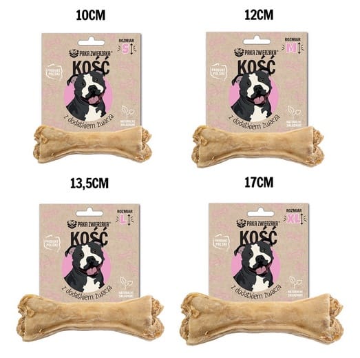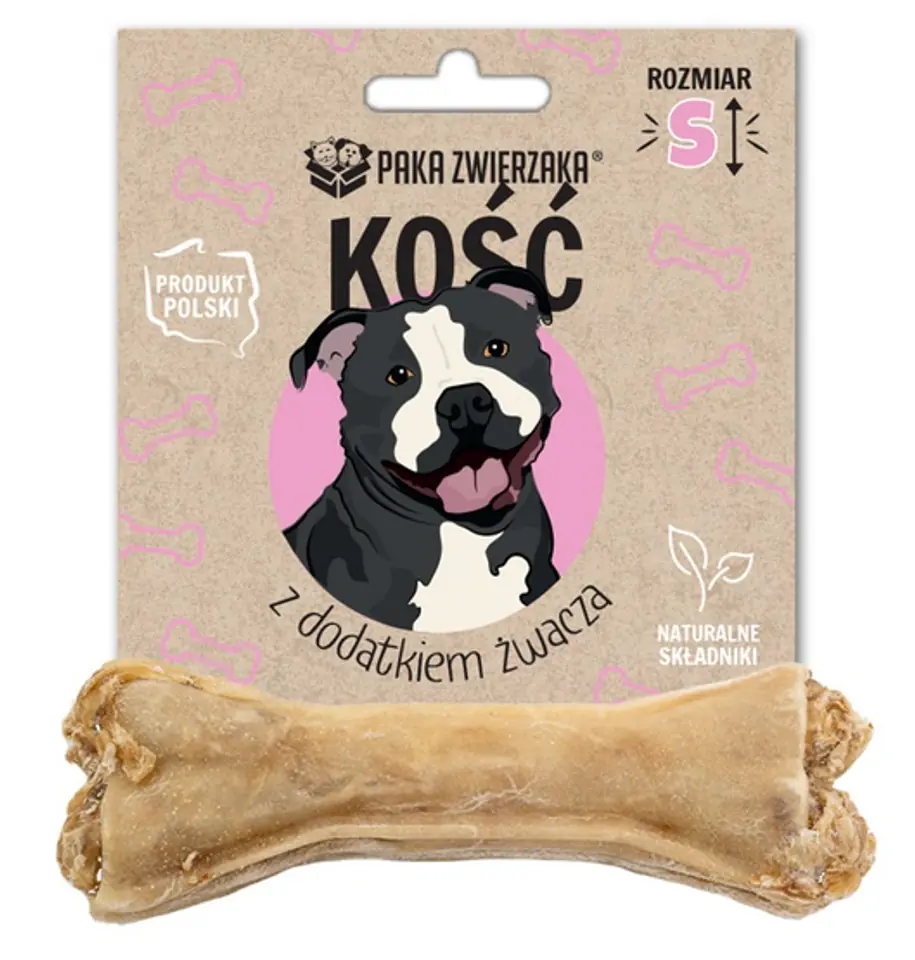 PAKA ZWIERZAKA Kość z dodatkiem żwacza S (10 cm)Kość wykonana ręcznie, pozbawiona klejów i barwników. Stworzona tylko z naturalnych składników najwyższej jakości. Bezpieczna dla dziąseł psa, nie zawiera ostrych elementów.Przysmak wyprodukowany w Polsce pod nadzorem Powiatowego Lekarza Weterynarii.Gryzak wspomaga prawidłowe utrzymanie higieny jamy ustnej i zaspokaja naturalną potrzebę gryzienia i żucia.