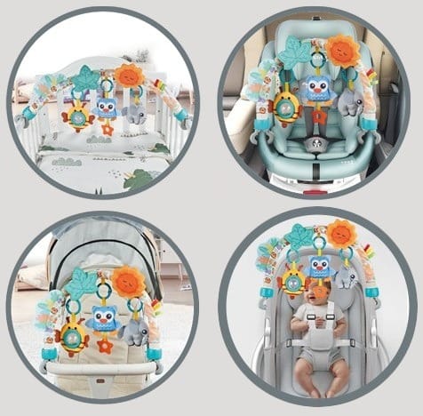 Pałąk sensoryczny z zabawkami i grzechotkami