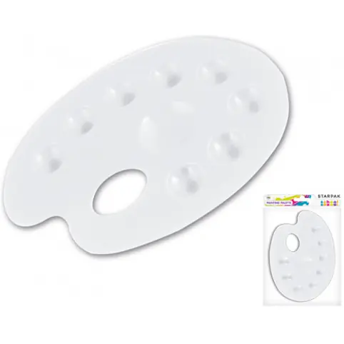 Paleta do farb z dużym, wygodnym uchwytem, pozwala na poszukiwanie własnych rozwiązań kolorystycznych i pomoże każdemu młodemu malarzowi w pierwszych próbach artystycznych. 8 Pojemniczków do mieszania farb.