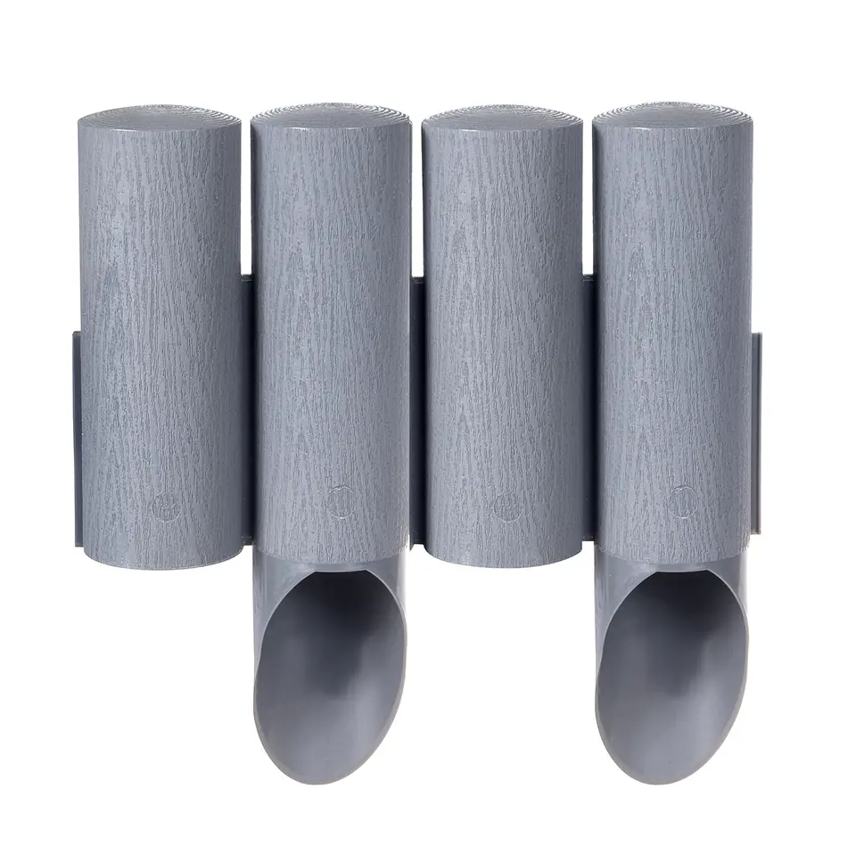 Doskonale oddziela trawnik od części uprawnej ogrodu i rabat kwiatowych. Innowacyjna konstrukcja szpilki zapobiega jej łamaniu podczas wbijania. Tekstura drewna na powierzchni palisady. Nie wymaga konserwacji. Odporna na promieniowanie UV - trwałość koloru. Mrozoodporna, wygodny sposób łączenia elementów pozwala na dowolne formowanie kształtu palisady.