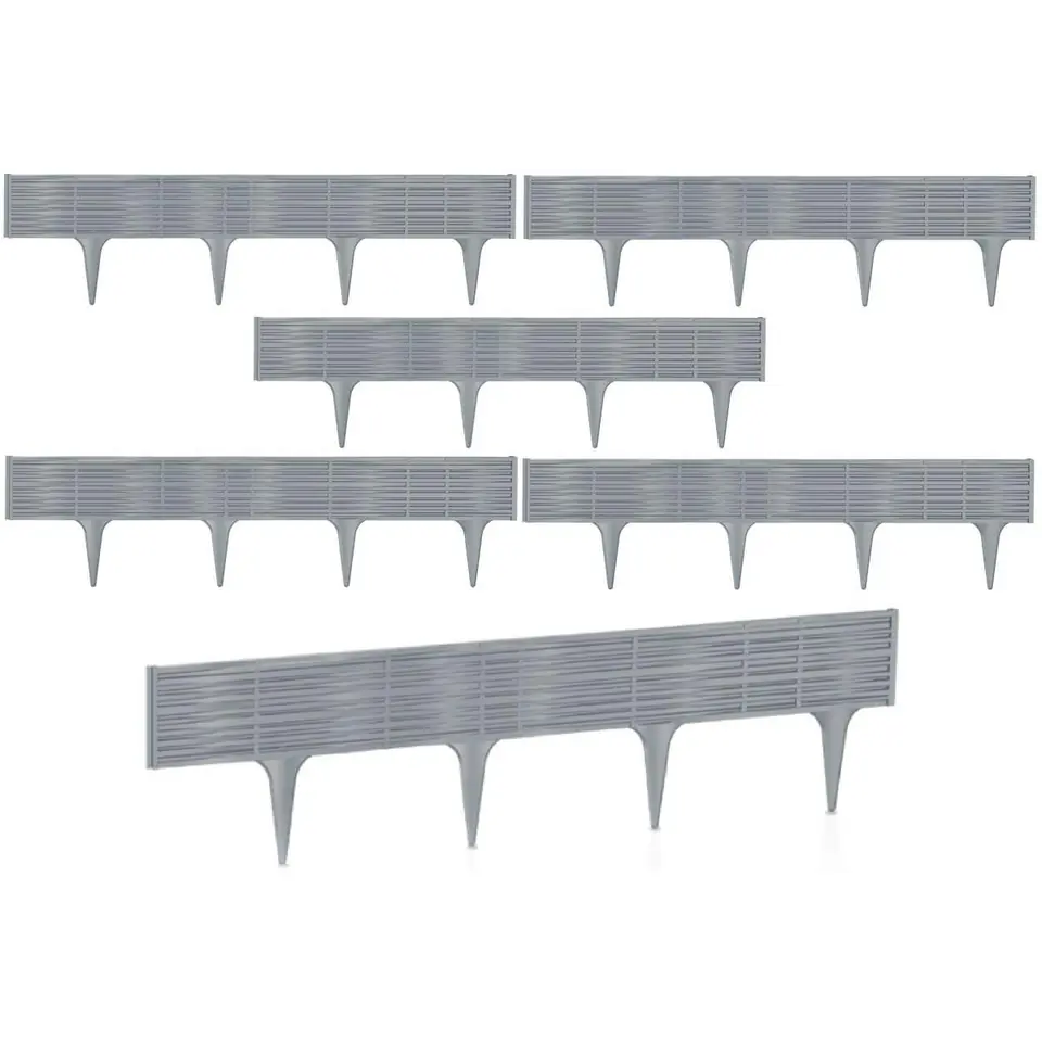 - Całkowita długość (segmentów) ok.: 390 cmWymiary segmentu ok.: 78 x 0,3 x 18,6 (dł. x gr. x wys.)Wysokość bez szpilki ok.: 9,3 cmGroty do wbijania: Tak, po 4 szt. na segment (zintegrowane z palisadą)Waga netto ok.: 1 kgWaga brutto ok.: 1,143 kgMateriał: tworzywo sztuczneKolor: szaryZestaw: 5 segmentówProducent: Prosperplast
