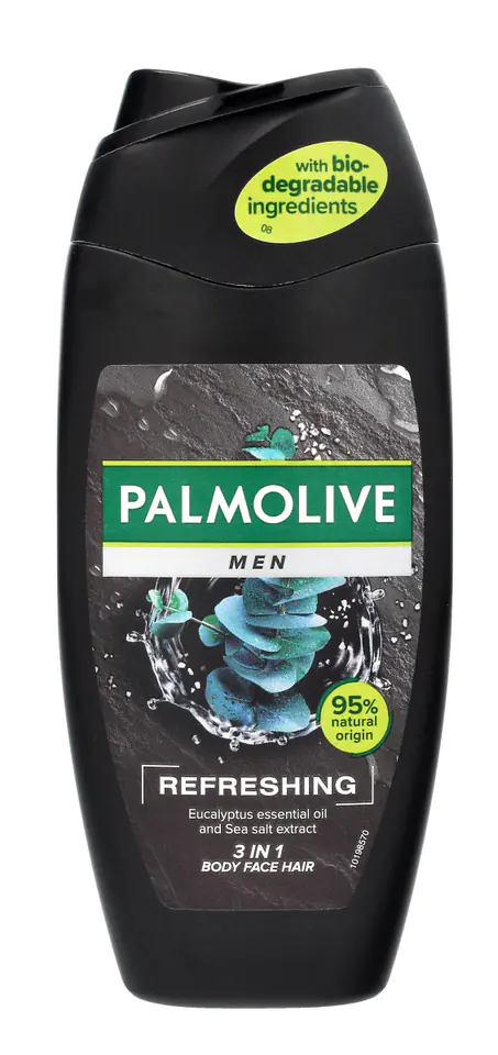 Ciesz się regenerującym doznaniem i zbliż się do świata natury dzięki żelowi pod prysznic dla mężczyzn Palmolive Refreshing 3-in-1. Idealnie dba o ciało, twarz i włosy oraz zawiera olejek eukaliptusowy i ekstrakt z soli morskiej.Ma w 95% biodegradowalną formułę i 95% składników naturalnego pochodzenia*,łagodną, przebadaną dermatologicznie formułę. Dostępny w plastikowej butelce nadającej się do recyklingu.