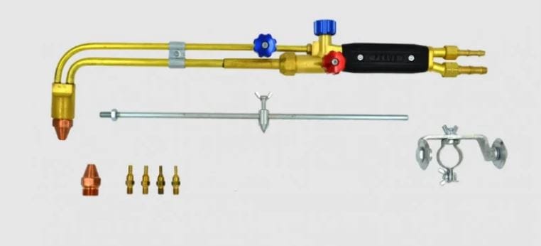 Palnik posiada dysze typu pierścieniowego oraz zawór tlenu tnącego z pokrętłem.