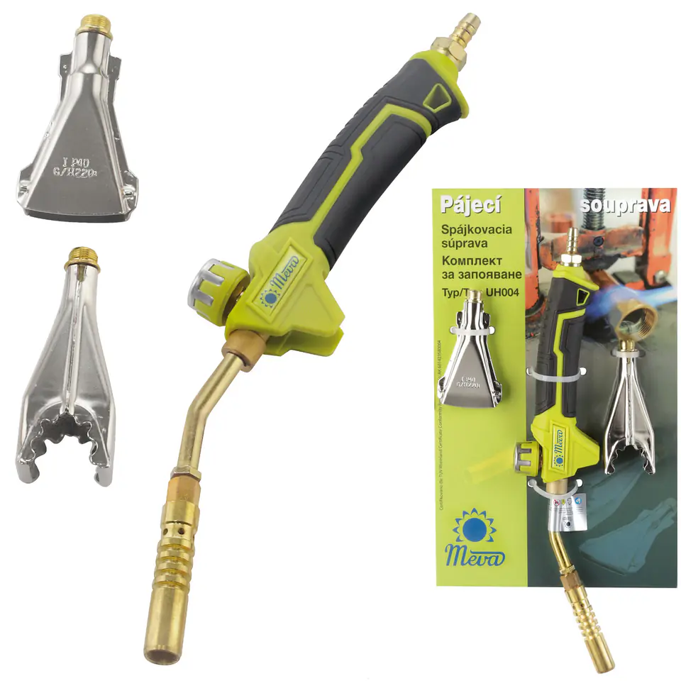 Kod produktu: 1010658 Wysokiej jakości produkt czeskiego lidera w produkcji urządzeń i akcesoriów gazowych firmy MEVA istniejącej od 1898 r. Niezwykle trwały i skuteczny palnik gazowy do lutowania na twardo oraz miękko. Sprawdzi się on także podczas podgrzewania różnych materiałów czy usuwania farb. Palnik może być zasilany gazem G30, propan-butan ze standardowej butli LPG. Wąż doprowadzający gaz montowany jest za pomocą opasek zaciskowych. Palnik lutowniczy o mocy sięgającej 2 kW wyposażony jest w wygodny uchwyt z pokrętłem służącym do regulacji przepływu gazu.W zestawie znajduje się rękojeść z zaworem regulacyjnym (z trzpieniem łączącym) oraz 3 końcówki zwiększające wszechstronność urządzenia: