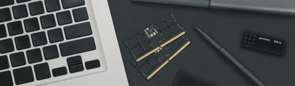 Pamięci Goodram DDR5 SODIMM to olbrzymi przeskok technologiczny względem wcześniejszych generacji, a ponadto niespotykana dotychczas wydajność. Różnicę z pewnością docenią użytkownicy platform dostosowanych do najnowszego standardu – pamięci DRAM DDR5 to około pięćdziesięcioprocentowy wzrost przepustowości względem generacji czwartej oraz dwukrotnie wyższa ilość banków. Jednym z najważniejszych elementów modułów pamięci DDR5 jest PMIC (Power Management Integrated Circuit), czyli układ scalony zarządzający energią. Kolejnym równie ważnym elementem jest układ scalony SPD HUB – połączenie układu EEPROM znanego z poprzedniej generacji modułów oraz SPD (ang. Serial Presence Detect) rozszerzonego o czujnik temperatury. Układ ten umożliwia zapisanie podstawowych informacji o module i jego parametrach w szerszym spektrum.