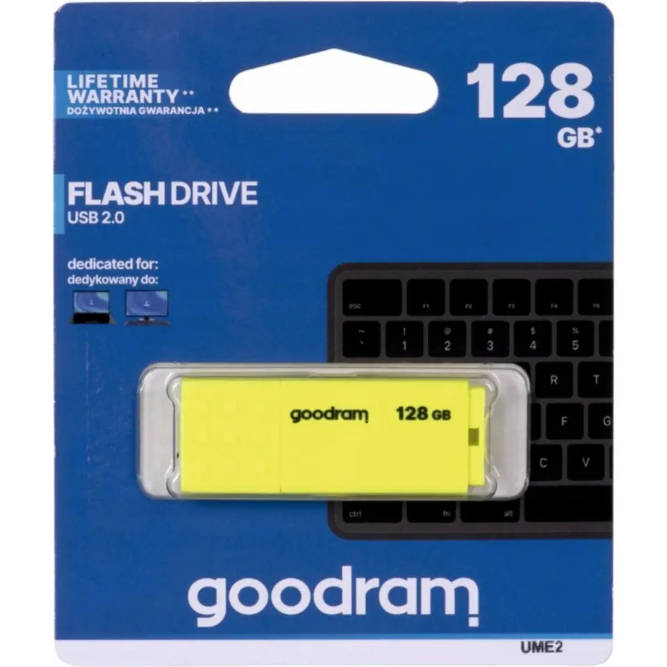 Pamięć UME2 dostępna jest w pojemnościach od 8 GB do 128 GB. Użyte komponenty pozwalają uzyskać prędkości odczytu do 20 MB/s i zapisu do 5 MB/s. Podobnie jak wszystkie inne pamięci USB marki GOODRAM, UME2 objęty jest dożywotnią gwarancją producenta.
