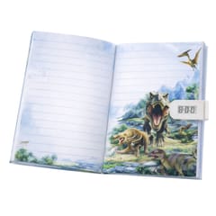 Po otwarciu pamiętnika za pomocą kodu znajdującego się na okładce uruchamia się wesoła melodia, która dodatkowo uatrakcyjnia korzystanie z pamiętnika. Kod można w późniejszym czasie samodzielnie zmienić, co umożliwia dostosowanie zabezpieczenia do własnych potrzeb. Wnętrze pamiętnika wypełnione jest kolorowymi stronami ozdobionymi pięknymi motywami dinozaurów, które zachęcają do pisania, rysowania oraz rozwijania wyobraźni.