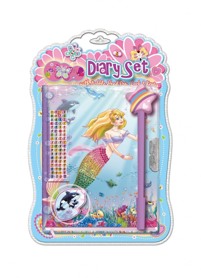 Pecoware Pamiętnik z długopisemGruby pamiętnik z kolorowymi kartkami zamykany na zamek. W zestawie znajduje się ozdobny długopis, naklejka 3D, cekiny samoprzylepne do ozdabiania oraz 2 kluczyki do zamka.