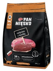 Pan Mięsko Karma sucha dla kota - cielęcina i kaczka chrupki M 400g