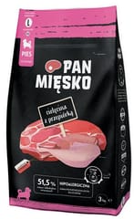 PAN MIĘSKO CIELĘCINA Z PRZEPIÓRKĄKARMA PEŁNOPORCJOWA DLA SZCZENIĄT I MŁODYCH PSÓW