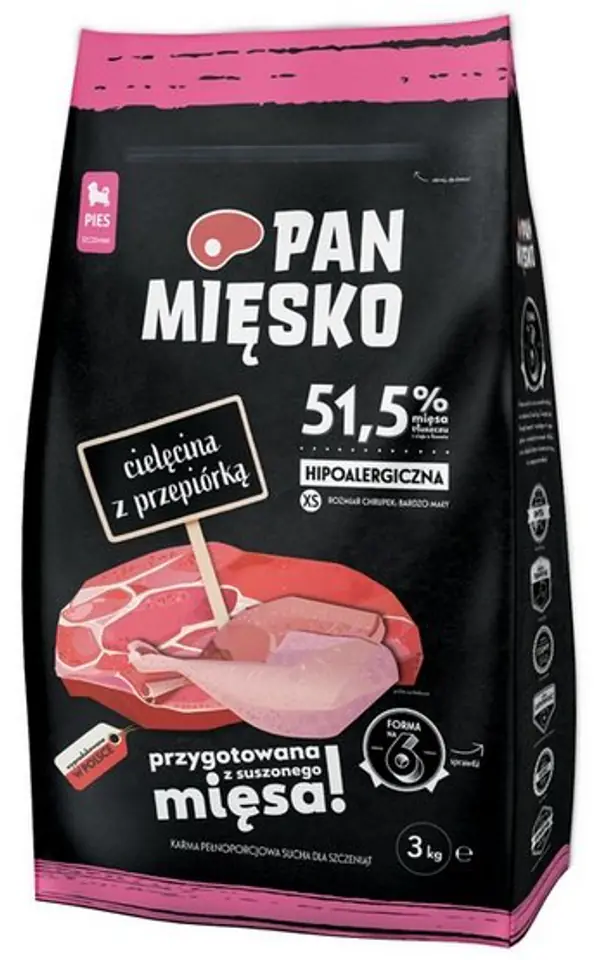 PAN MIĘSKO CIELĘCINA Z PRZEPIÓRKĄKARMA PEŁNOPORCJOWA DLA SZCZENIĄT I MŁODYCH PSÓW