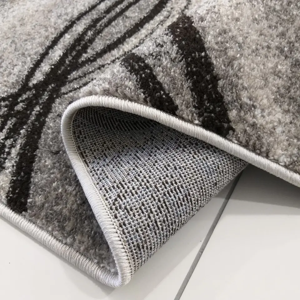 Dywan Panamero z oryginalnym wzorem w fale udekoruje każde nowoczesne wnętrze. Produkt ten wykonany został z najwyższej jakości przędzy polipropylenowej, która charakteryzuje się trwałością, odpornością na ścieranie oraz trwałością kolorów. Piękne odcienie szarości świetnie podkreślą nowoczesną, jak i klasyczną aranżację, a geometryczne, nietuzinkowe wzornictwo oczaruje każdego. Wykonany z dbałością o najmniejszy szczegół. Waga - 1900g/m2.