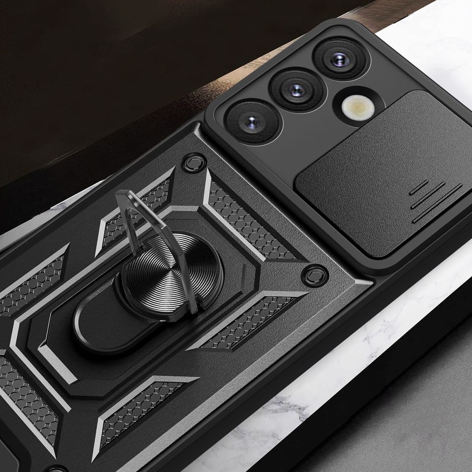 Kod produktu: 1029080Zapewnij swojemu smartfonowi najwyższy poziom ochrony dzięki pancernemu etui Hybrid Armor Camshield. To etui łączy w sobie wytrzymałość, styl i funkcjonalność, gwarantując maksymalne zabezpieczenie Twojego smartfona przed upadkami, wstrząsami oraz zarysowaniami. Wyposażone w przesuwaną osłonę aparatu oraz wbudowany metalowy ring, zapewnia komfort użytkowania oraz dodatkowe możliwości, takie jak funkcja podstawki i kompatybilność z magnetycznymi uchwytami samochodowymi.Najważniejsze cechy: