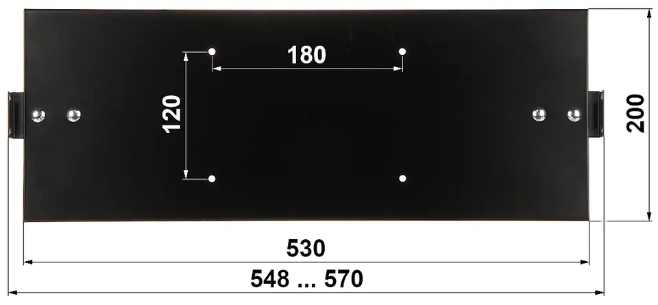 W panelu znajdują się 4 otwory Ø6mm o rozstawie 180 x 120mm