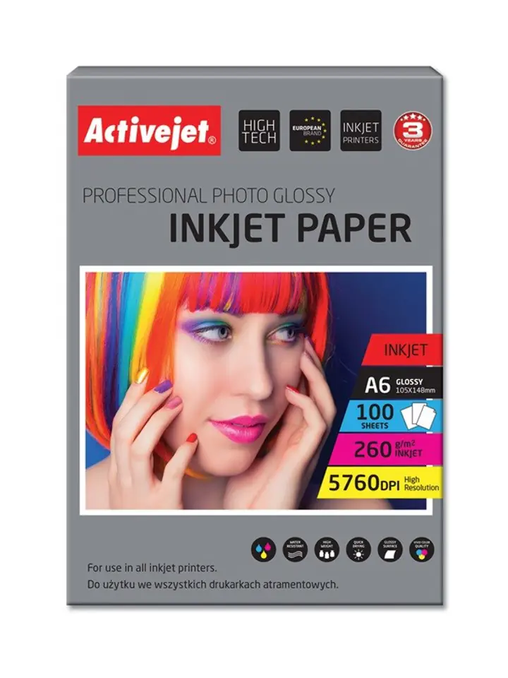 Papier fotograficzny błyszczący Activejet AP6-260GR100 10x15 A6; 100 szt.