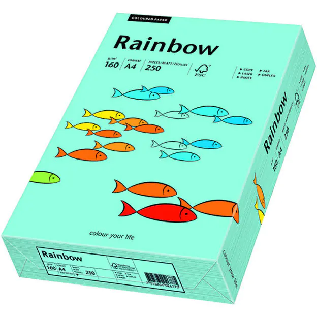 Wysokiej jakości papier kolorowy A4 Rainbow. Papier Rainbow to bez wątpienia jeden z najlepszych papierów sprzedawanych w Polsce. Kolorowy papier biurowy, bezdrzewny, matowy, dla kopiarek, drukarek laserowych i drukarek atramentowych.