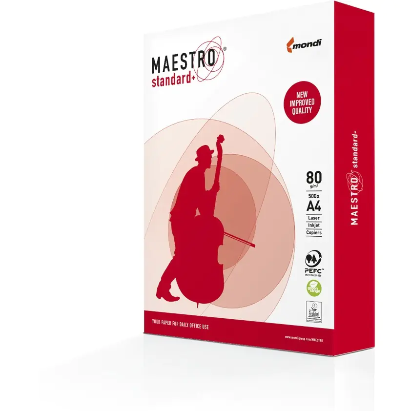 MAESTRO standard+ to nowoczesny papier biurowy, idealnie dostosowany do wydruków czarno-bialych. Jego bardzo korzystny wspólczynnik kosztów do korzyści wyznacza nowe standardy w codziennym uzytkowaniu papieru. Produkt o podwyzszonej bialości. Przeznaczony dla uzytkowników potrzebujących wielofunkcyjnego papieru do wszystkich rodzajów druku.