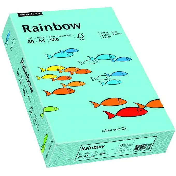 Wysokiej jakości papier kolorowy A4 Rainbow. Papier Rainbow to bez wątpienia jeden z najlepszych papierów sprzedawanych w Polsce. Kolorowy papier biurowy, bezdrzewny, matowy, dla kopiarek, drukarek laserowych i drukarek atramentowych.