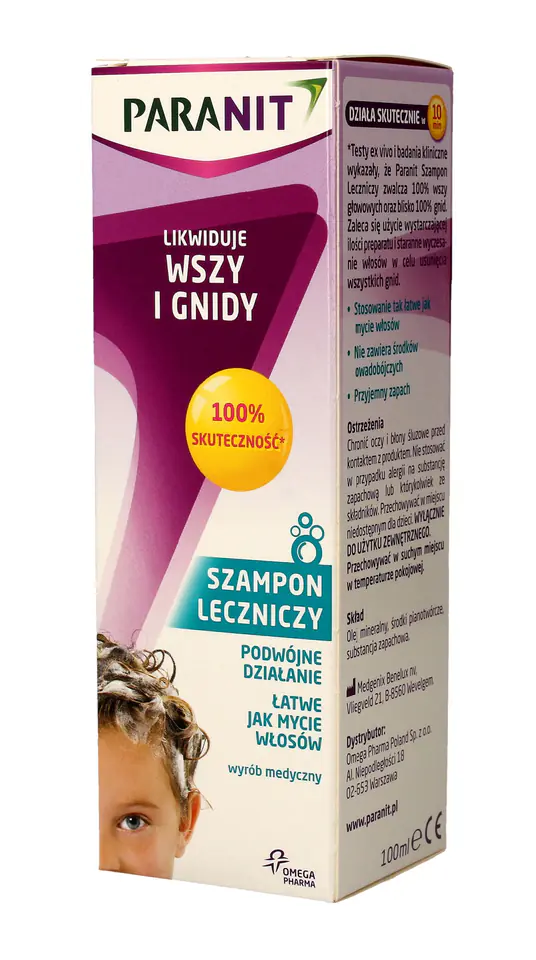 Nałóż odpowiednią ilość szamponu Paranit na suche włosy. Rozprowadź równomiernie od nasady aż po końcówki, upewniając się, że dotarł do skóry głowy i pokrył wszystkie włosy. Następnie wmasuj, zwracając szczególną uwagę na okolice za uszami i powyżej karku.
