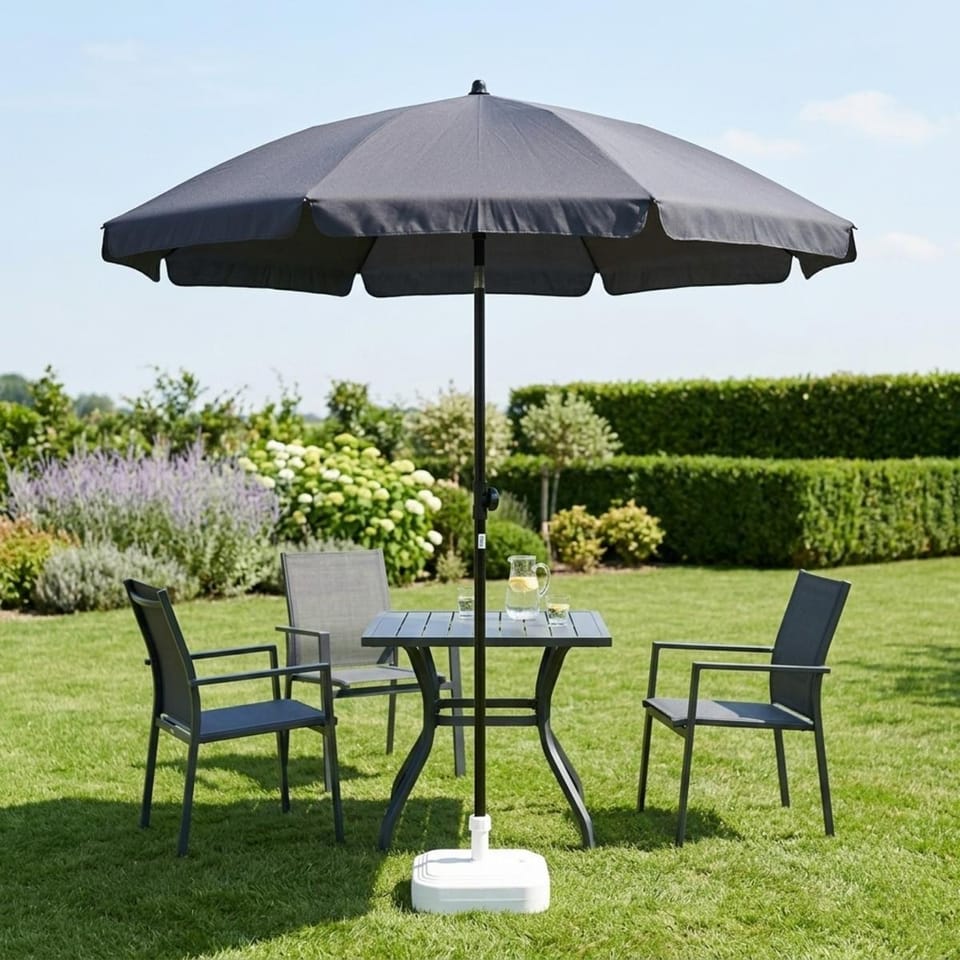 Zamów PARASOL OGRODOWY 185CM ANTRACYT już dziś i stwórz swoje idealne miejsce do relaksu na świeżym powietrzu! Ciesz się słońcem, a jednocześnie bądź chroniony w elegancki i stylowy sposób!