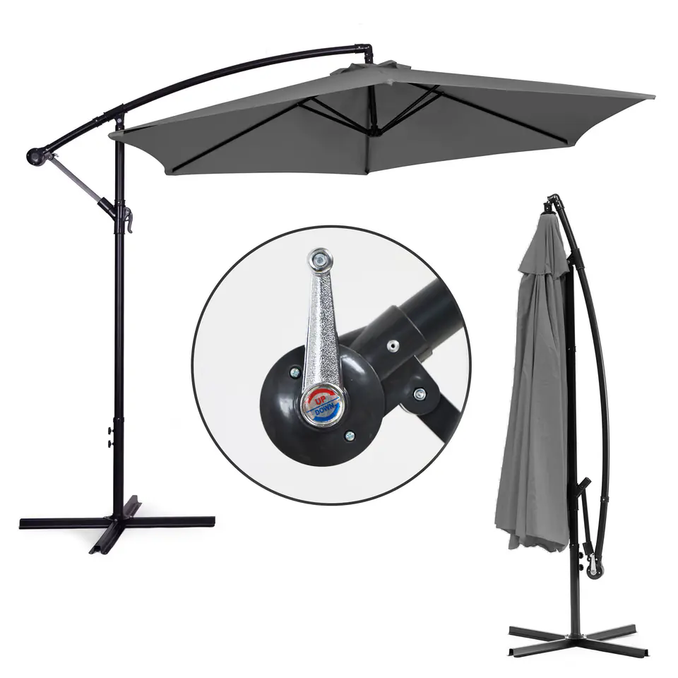- Mechanizm korbowy (linka) do łatwego rozstawiania parasola