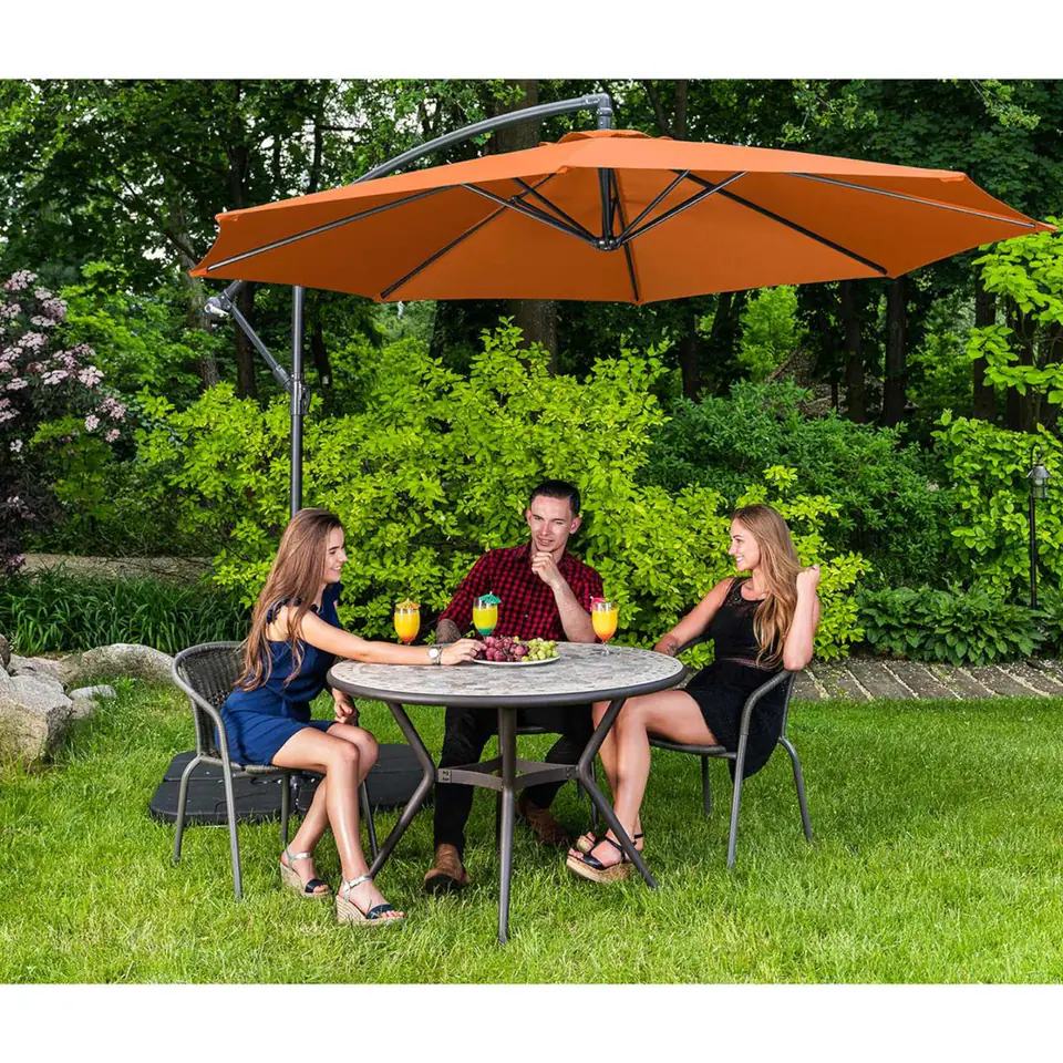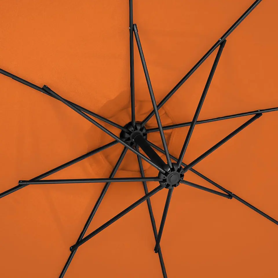 Kod producenta: 10250530Parasol ogrodowy marki Uniprodo sprawdzi się w każdym ogrodzie, na tarasie czy działce i wszędzie tam, gdzie potrzebne jest zapewnienie cienia w słoneczny dzień. Posiada dużą czaszę o średnicy 300 cm. Współczynnik ochrony UPF 50+ zatrzymuje około 98% wszystkich promieni UV. Parasol wykonany został z solidnego poliestru o gęstości 180 g/m2, ma wysoką wytrzymałość na rozciąganie, rozdarcie, jest trwały, odporny na promieniowanie UV i łatwy w pielęgnacji. Ręczna korba pozwala szybko i bez wysiłku otworzyć i zamknąć parasol oraz go pochylić. Materiał i konstrukcja odznaczają się długą żywotnością. Słupek o średnicy 48 mm oraz 8 żeber wykonano z wytrzymałej stali. System ochrony przed wiatrem zapewnia stabilność i lepszą cyrkulację powietrza nawet podczas niesprzyjającej pogody. Dzięki wspornikowi parasol oszczędza miejsce, można ustawić go przy ścianie lub obok stołów. Stalowa podstawa posiada otwory, którymi za pomocą śrub można przymocować parasol w dowolnym miejscu. Dla uzyskania jeszcze lepszej stabilności można dokupić specjalną podstawę, która dodatkowo przytrzyma całość na miejscu.